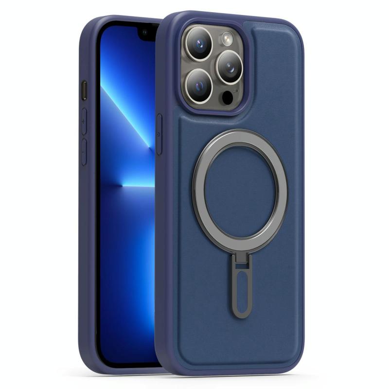For iPhone 13 Pro Silver Shield MagSafe Holder Shockproof Phone Case(Deep Blue)