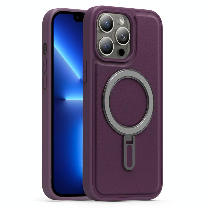 For iPhone 13 Pro Silver Shield MagSafe Holder Shockproof Phone Case(Purple)