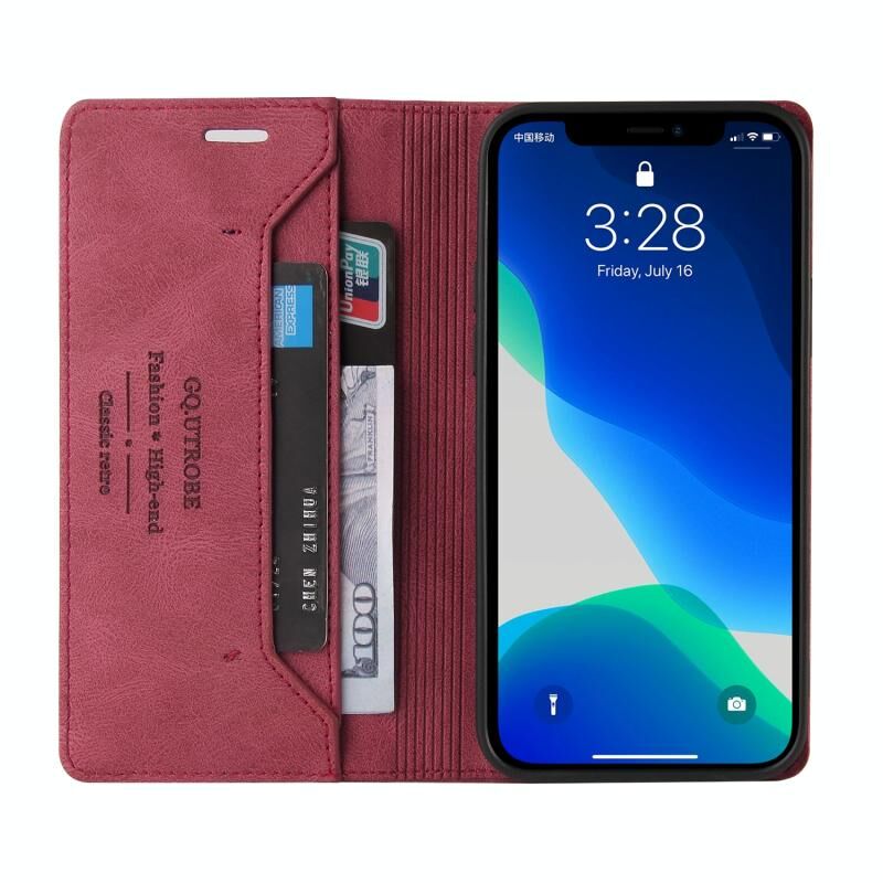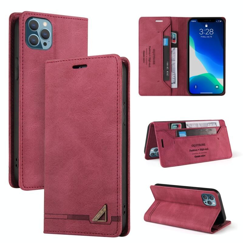 For iPhone 13 Pro Skin Feel Anti-theft Brush Horizontal Flip Leather Case with Holder & Card Slots & Wallet (Wine Red)