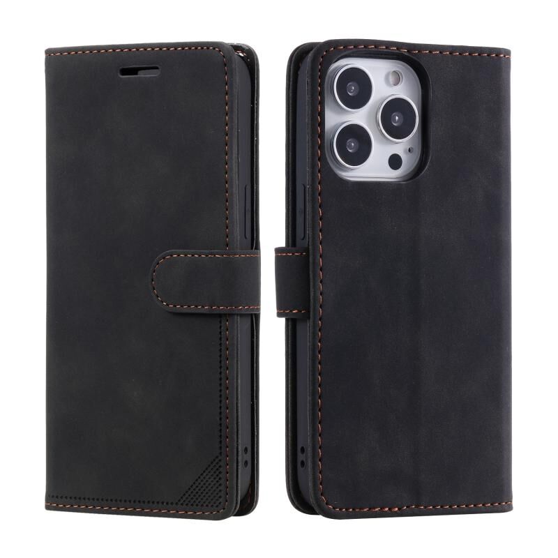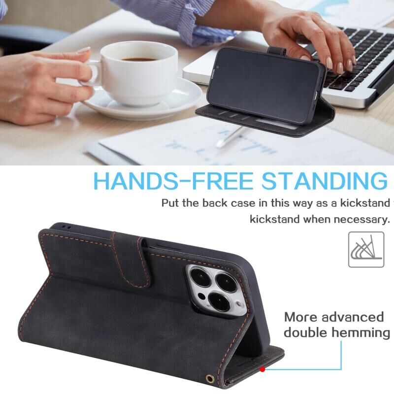 Θήκη τηλεφώνου δέρματος οριζόντιας αναδίπλωσης αντι-κλοπής με αίσθηση δέρματος για iPhone 13 Pro (Καφέ)