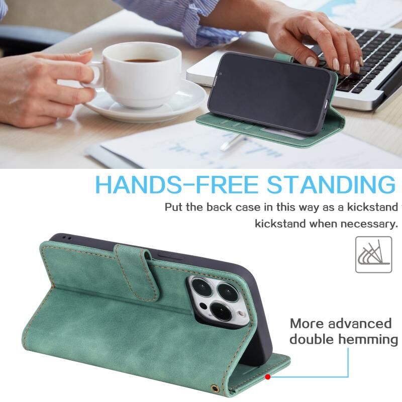 Θήκη τηλεφώνου δέρματος οριζόντιας αναδίπλωσης αντι-κλοπής με αίσθηση δέρματος για iPhone 13 Pro (Καφέ)