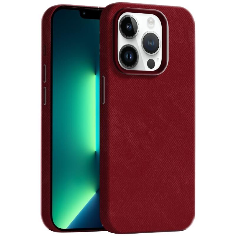 Θήκη τηλεφώνου MagSafe από δέρμα denim με αίσθηση δέρματος για iPhone 13 Pro (Καρμίνιο)
