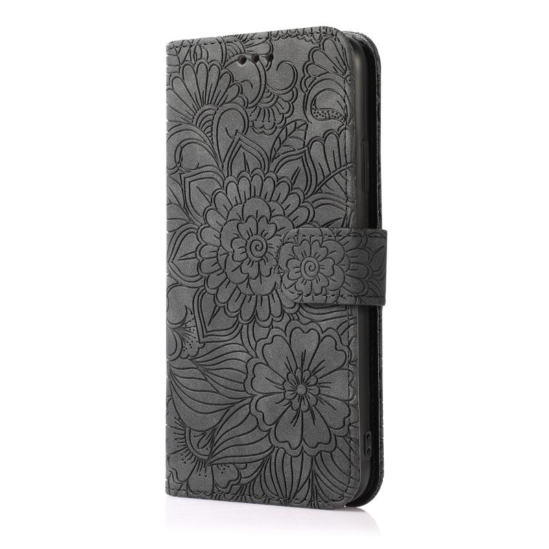 For iPhone 13 Pro Skin Feel Embossed Sunflower Horizontal Leather Case (Black)