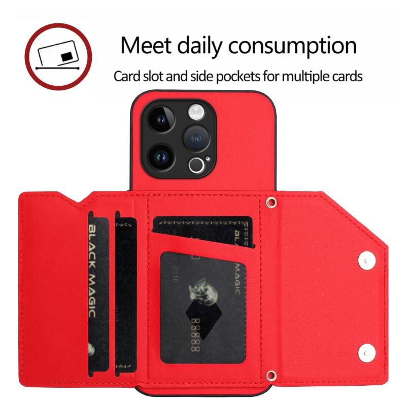 1. Πολυλειτουργικός Σχεδιασμός: Συνδυάζει λειτουργίες θήκης τηλεφώνου και πορτοφολιού για εύκολη μεταφορά.