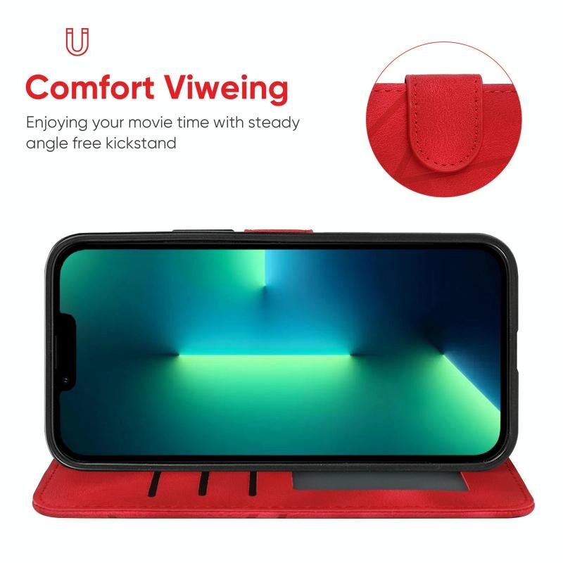 Θήκη τηλεφώνου δερμάτινη με γεωμετρικά σχέδια και αίσθηση δέρματος για iPhone 13 Pro (Κόκκινο)