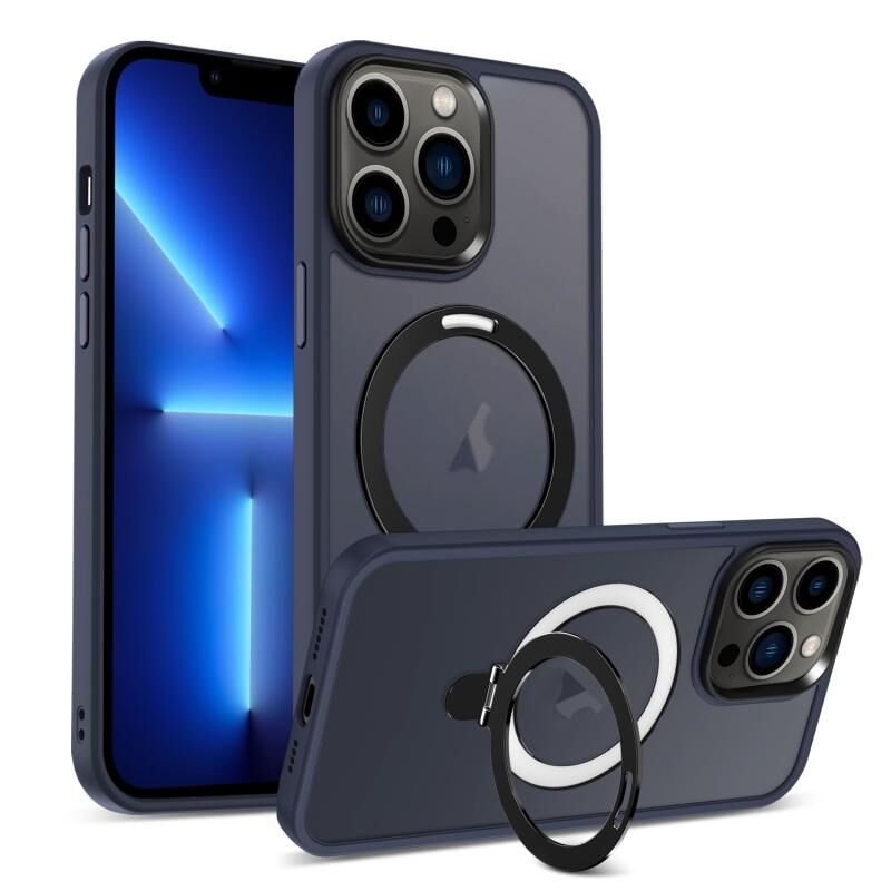 For iPhone 13 Pro Skin-feel MagSafe Holder PC Hybrid TPU Phone Case(Dark Blue)