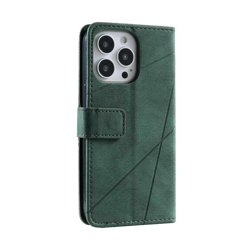 For iPhone 13 Pro Skin Feel Splicing Horizontal Flip Leather Phone Case (Green)