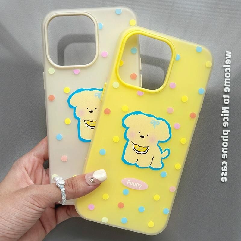 Θήκη τηλεφώνου για iPhone 13 Pro, υβριδική από TPU και PC, με αίσθηση δέρματος (Κίτρινο κουτάβι, κίτρινο).
