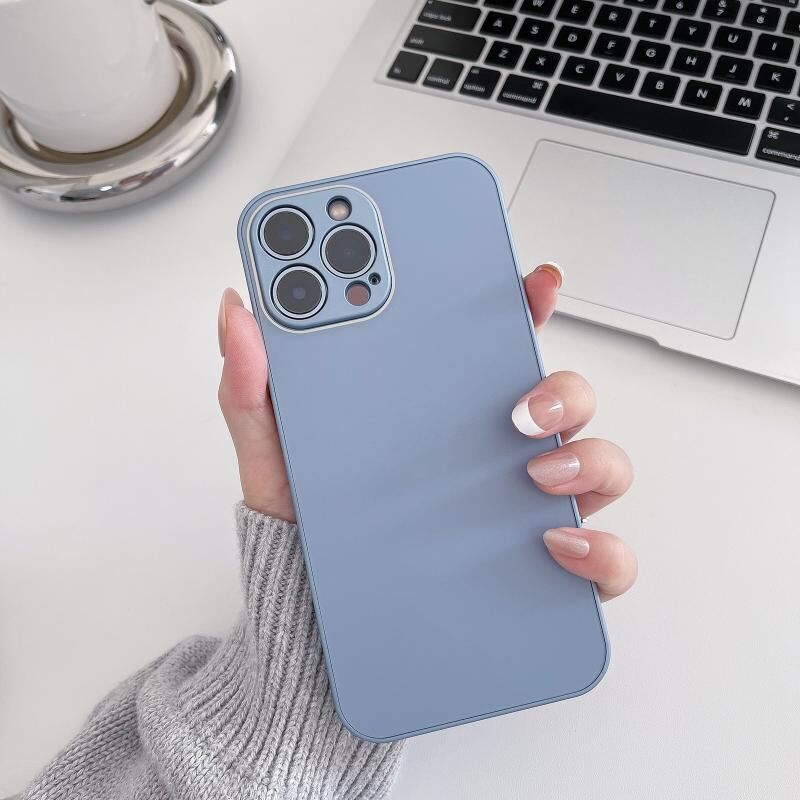 Θήκη τηλεφώνου από tempered glass με ματ υφή για iPhone 13 Pro (Γαλάζια Λίμνη)