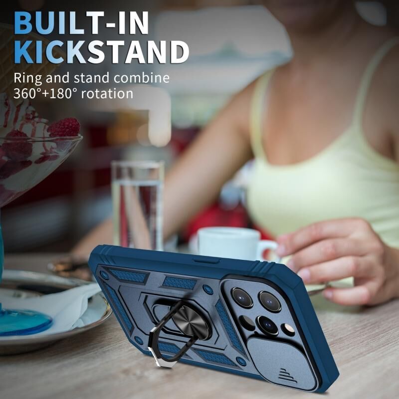 Θήκη προστασίας για iPhone 13 Pro με σχεδιασμό συρόμενου καλύμματος κάμερας, κατασκευασμένη από TPU + PC, με περιστρεφόμενη βάση 360 μοιρών & υποδοχή κάρτας (Λευκό+Μαύρο)