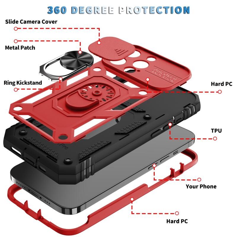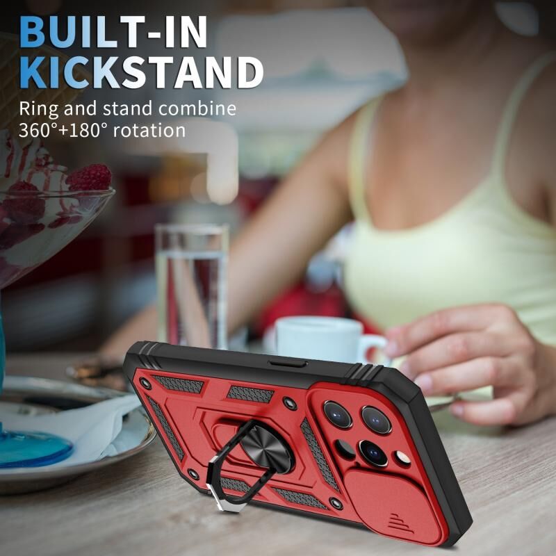 Θήκη προστασίας για iPhone 13 Pro με σχεδιασμό συρόμενου καλύμματος κάμερας, κατασκευασμένη από TPU + PC, με περιστρεφόμενη βάση 360 μοιρών & υποδοχή κάρτας (Λευκό+Μαύρο)
