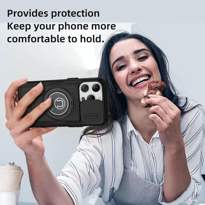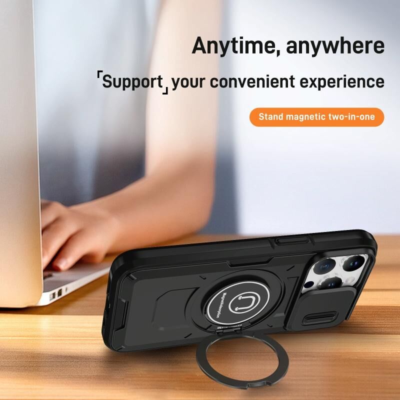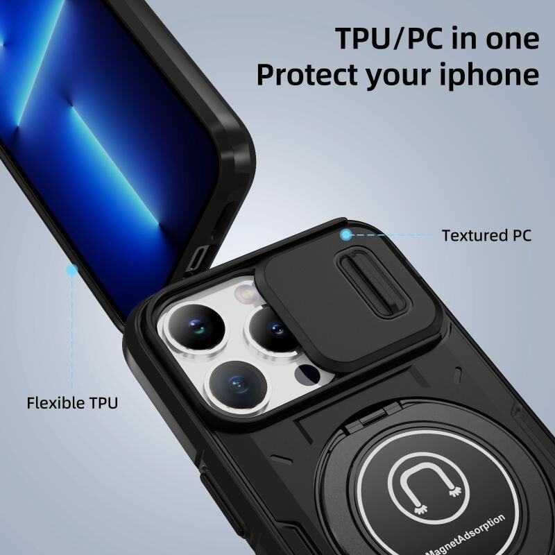 Θήκη τηλεφώνου για iPhone 13 Pro με ολισθαίνουσα προστασία κάμερας, υβριδική TPU/PC, μαγνητική βάση (Σκούρο Πράσινο)