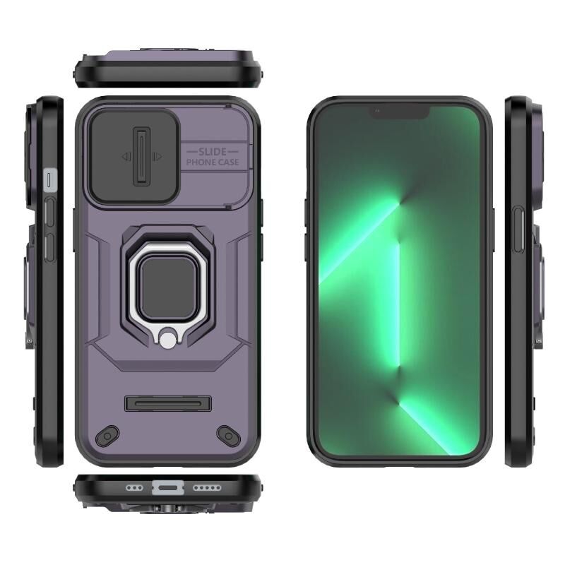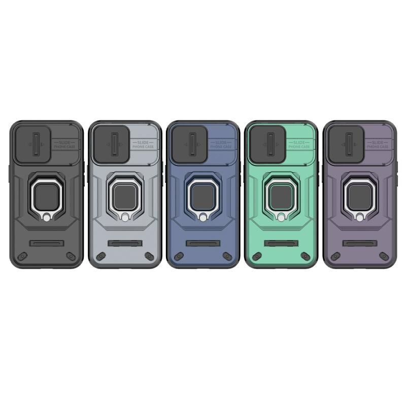 Θήκη κινητού τηλεφώνου για iPhone 13 Pro με ολισθαίνουσα προστασία κάμερας Camshield, κατασκευασμένη από TPU + PC, ανθεκτική σε κρούσεις, με βάση στήριξης (Γκρι)