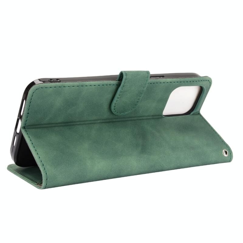 For iPhone 13 Pro Solid Color Skin Feel Magnetic Buckle Horizontal Flip Calf Texture PU Leather Case with Holder & Card Slots & Wallet (Green)