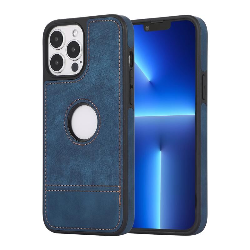 Θήκη τηλεφώνου για iPhone 13 Pro, ραφτή με κοψίματα και κενά, από PU δέρμα (Μπλε)