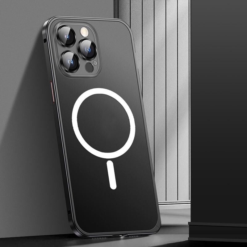For iPhone 13 Pro Spring Buckle Metal Frosted Magsafe Phone Case(Black)