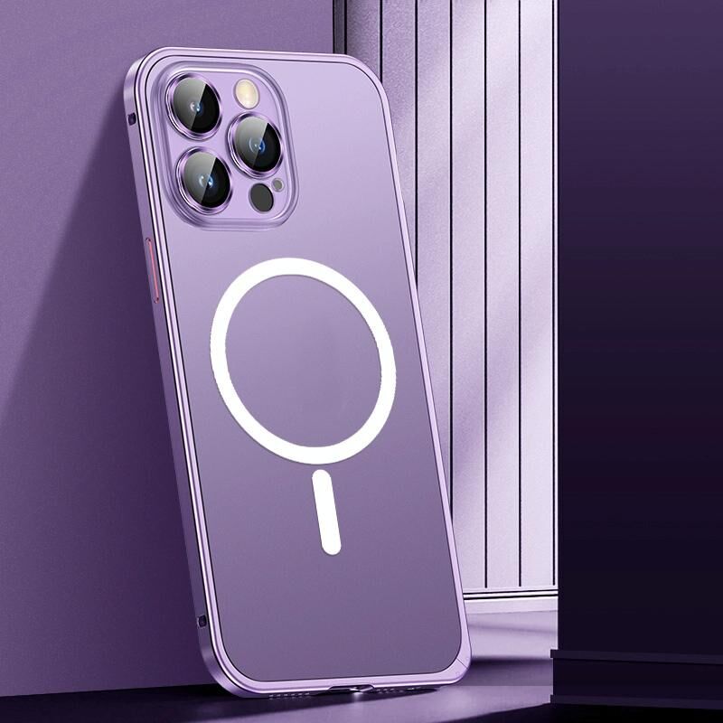 For iPhone 13 Pro Spring Buckle Metal Frosted Magsafe Phone Case(Deep Purple)