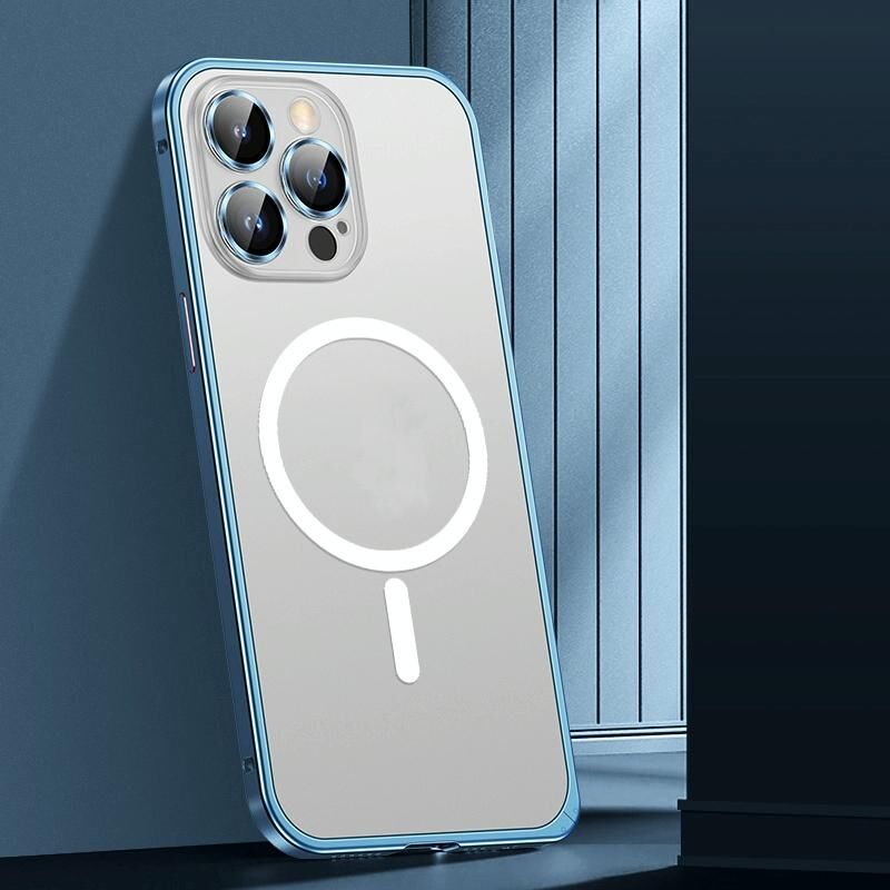 For iPhone 13 Pro Spring Buckle Metal Frosted Magsafe Phone Case(Sierra Blue)