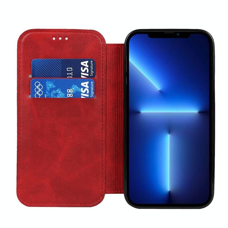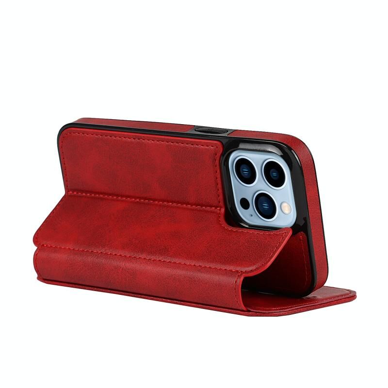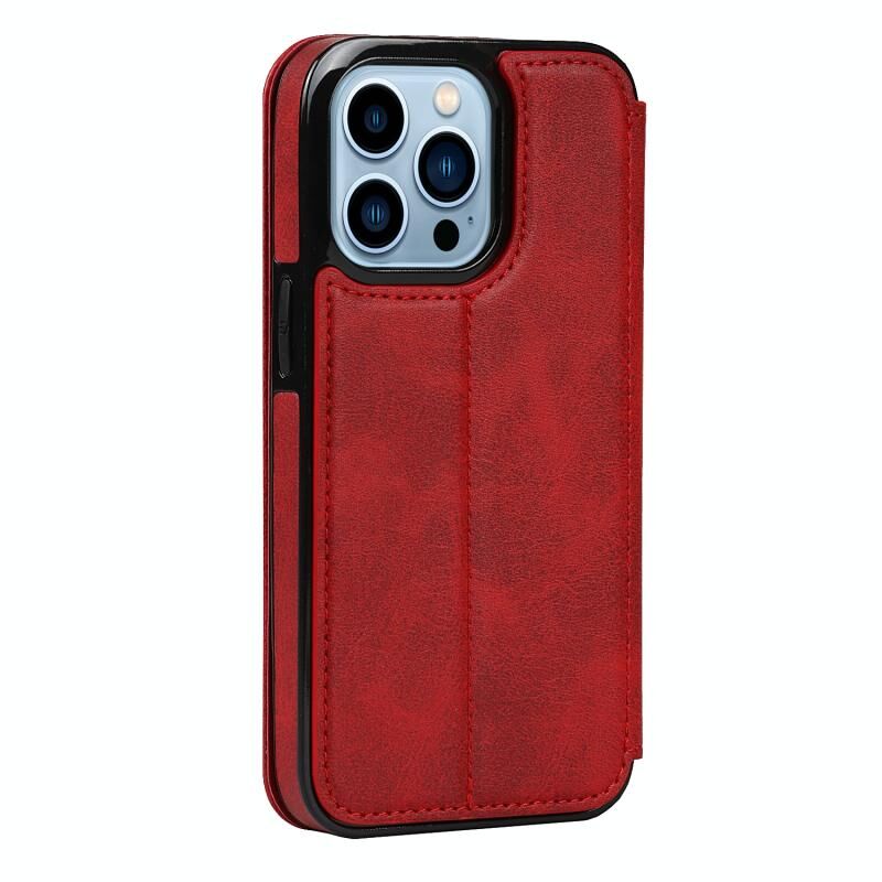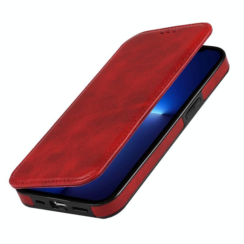For iPhone 13 Pro Strong Magnetic Closure PU + TPU Leather Case with Card Slots & Holder (Red)
