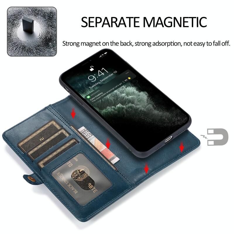 For iPhone 13 Pro Strong Magnetic Detachable Horizontal Flip Leather Case with Card Slots & Wallet (Blue)