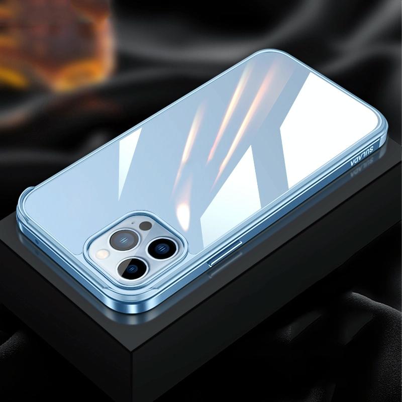 For iPhone 13 Pro SULADA Metal Frame + Nano Glass + TPU Phone Case (Sierra Blue) (SULADA)