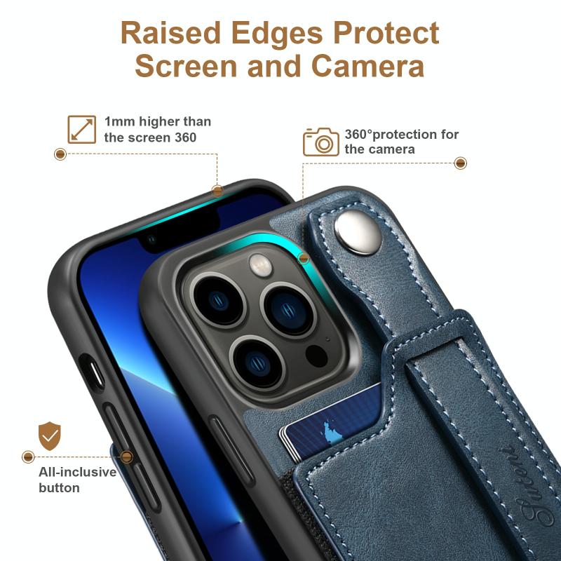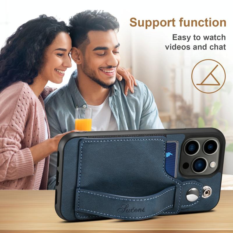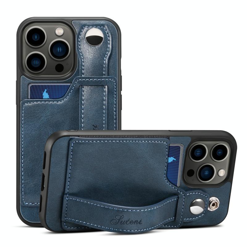 For iPhone 13 Pro Suteni 215 Wrist Strap PU Phone Case (Blue) (Suteni)