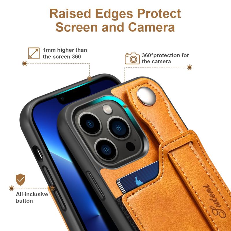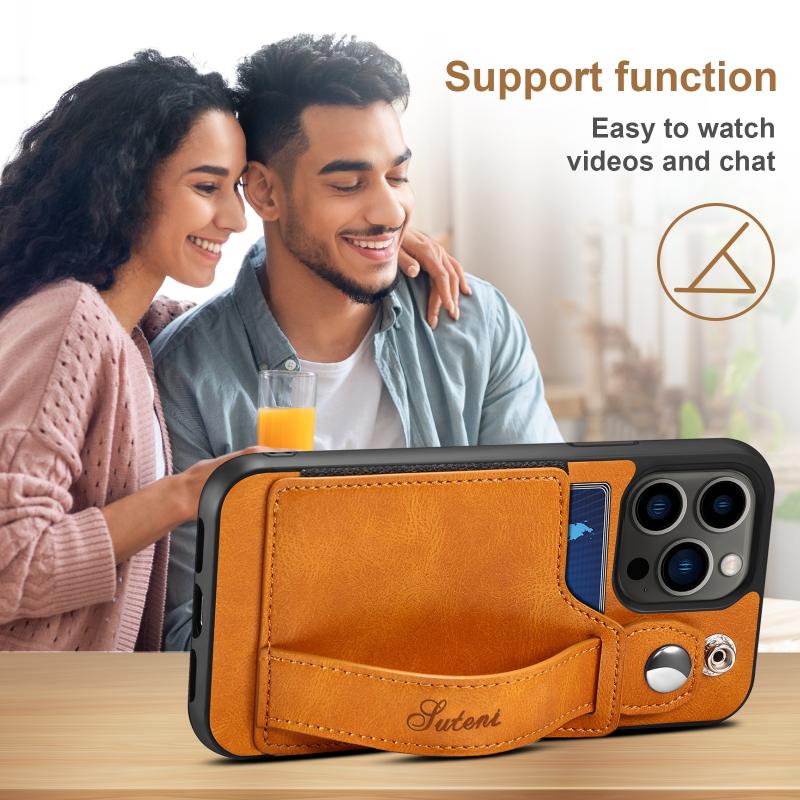 For iPhone 13 Pro Suteni 215 Wrist Strap PU Phone Case (Khaki) (Suteni)