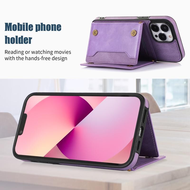 Θήκη τηλεφώνου από δέρμα με προστασία RFID για iPhone 13 Pro, τριπλή, με κορδόνι (Μαύρο)