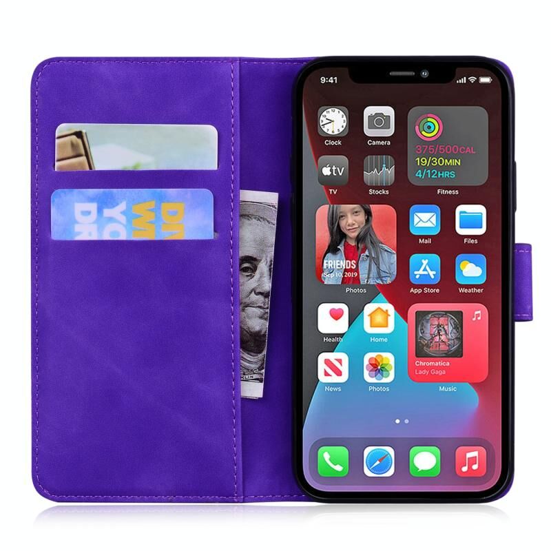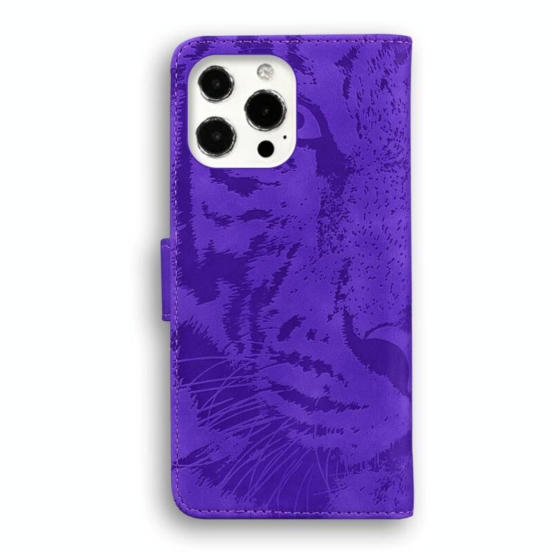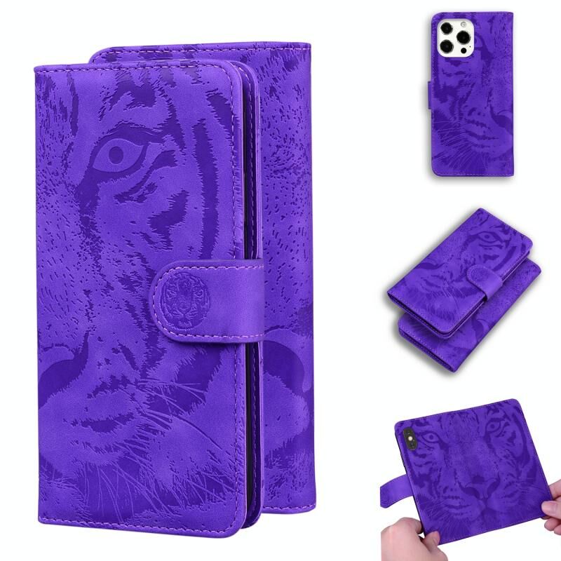 For iPhone 13 Pro Tiger Embossing Pattern Horizontal Flip Leather Case with Holder & Card Slots & Wallet (Purple)