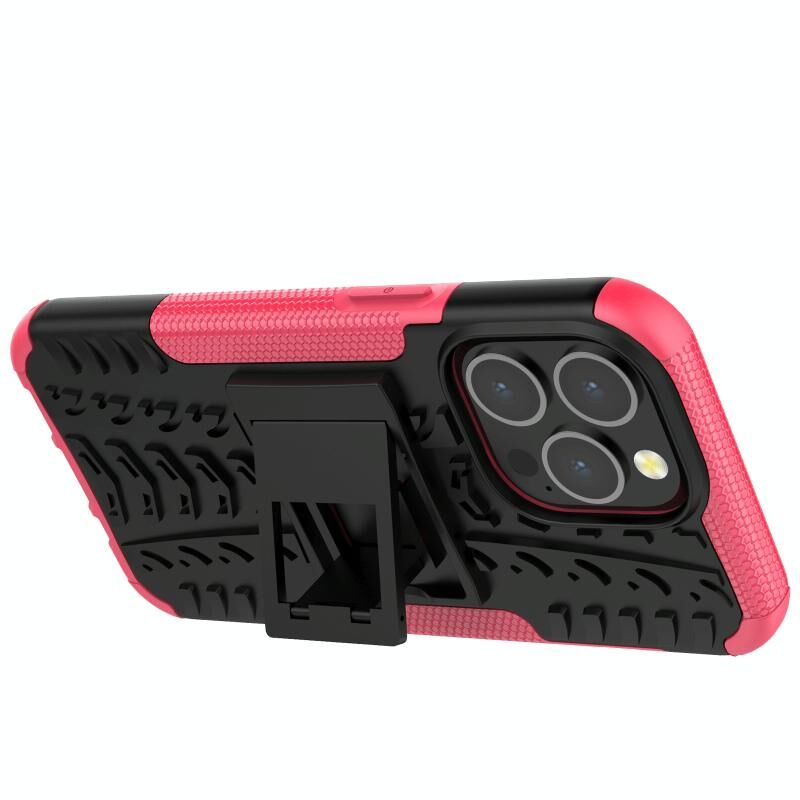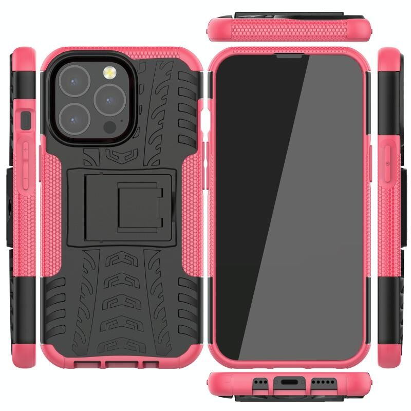 For iPhone 13 Pro Tire Texture Shockproof TPU+PC Protective Case with Holder (Pink)
