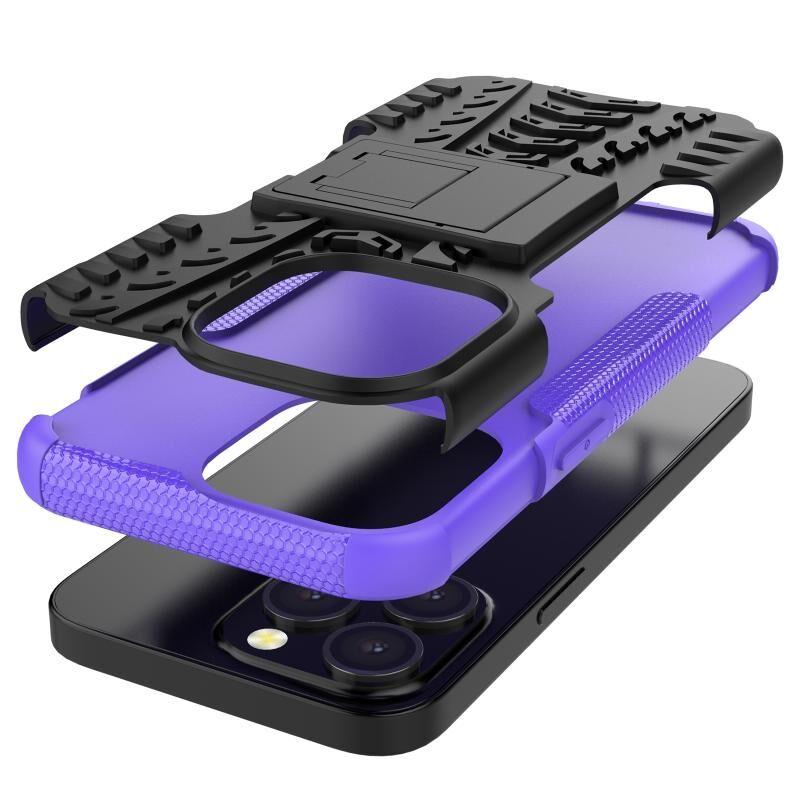 Θήκη προστασίας για iPhone 13 Pro με υφή ελαστικού, αντικραδασμική από TPU+PC με βάση στήριξης (Κόκκινη)