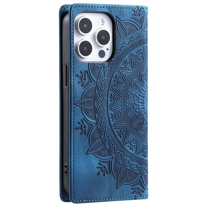 For iPhone 13 Pro Totem Embossed Magnetic Leather Phone Case(Blue)