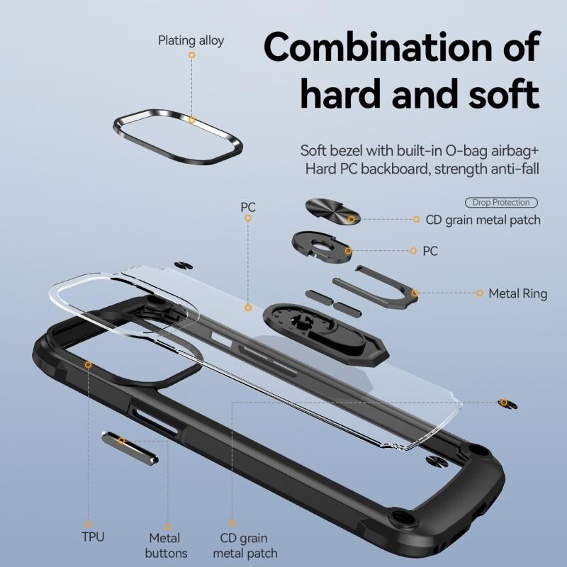 Θήκη τηλεφώνου για iPhone 13 Pro από TPU + PC με προστασία φακού και δακτύλιο στήριξης (Μαύρο)