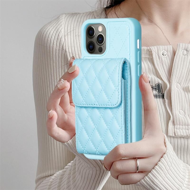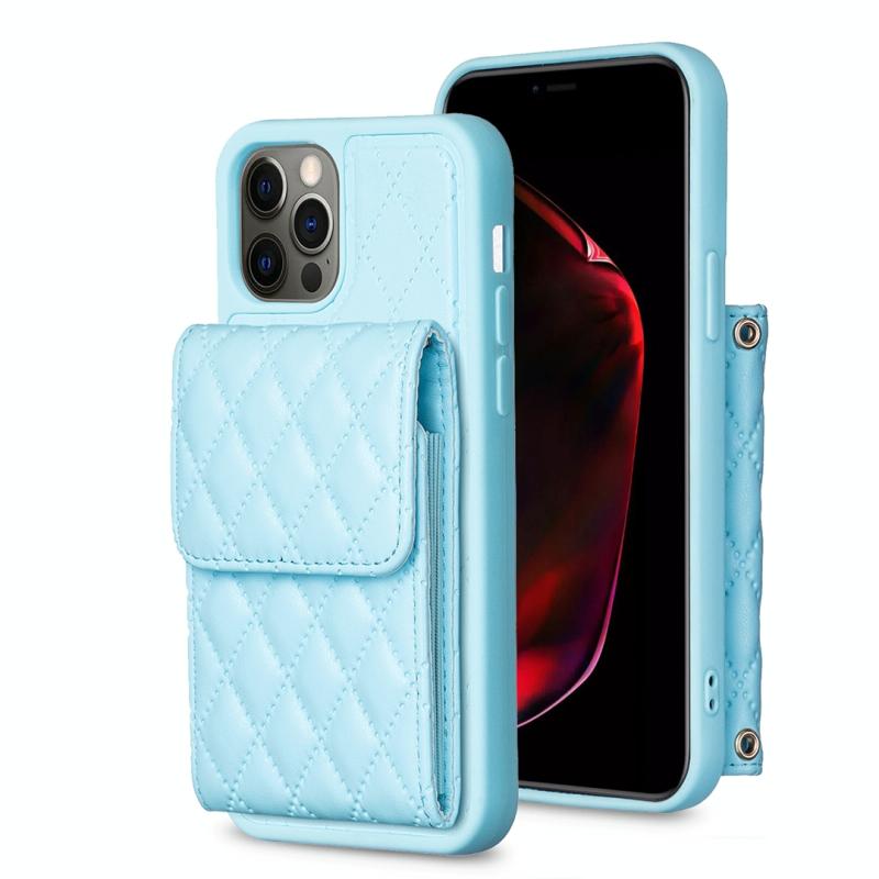 For iPhone 13 Pro Vertical Wallet Rhombic Leather Phone Case(Blue)