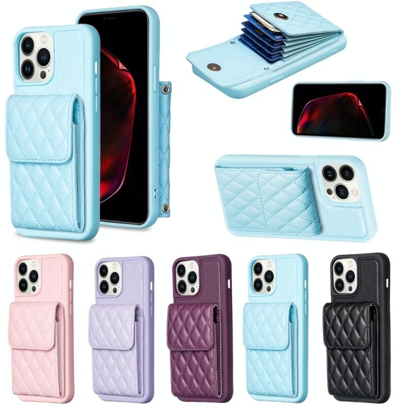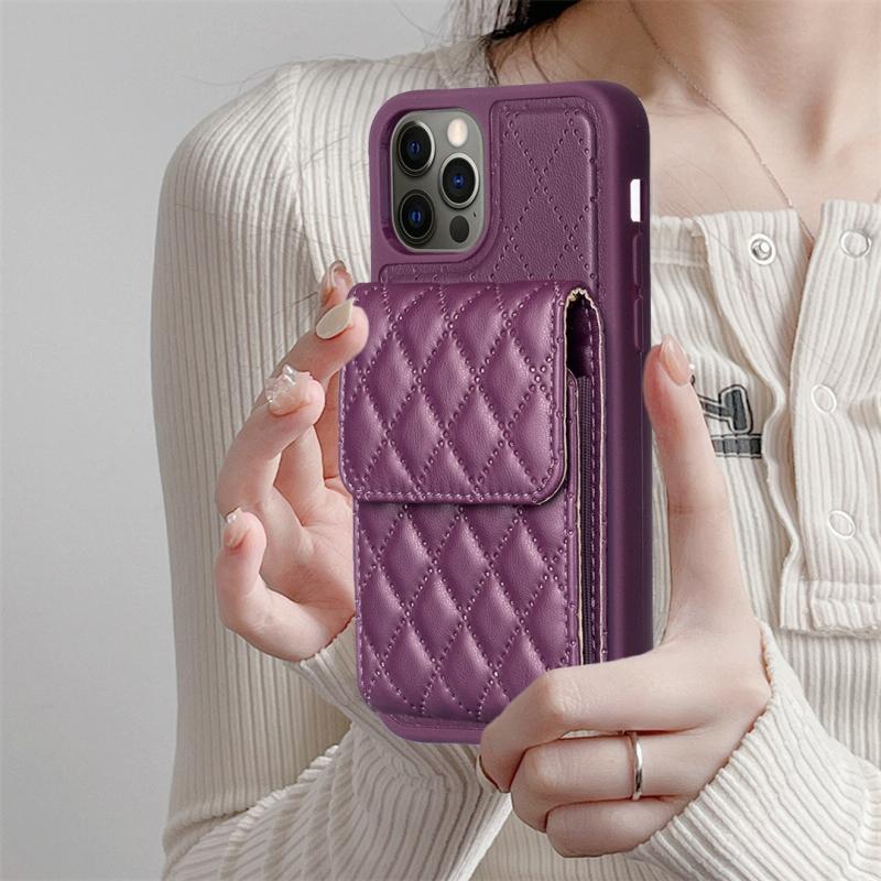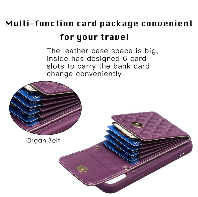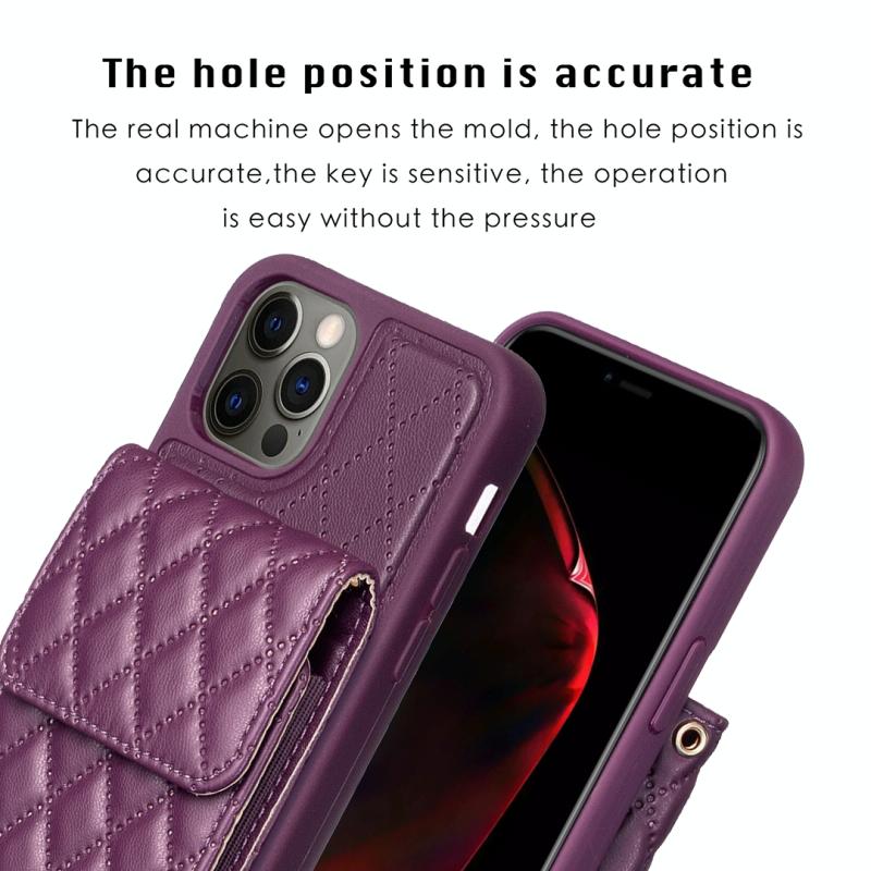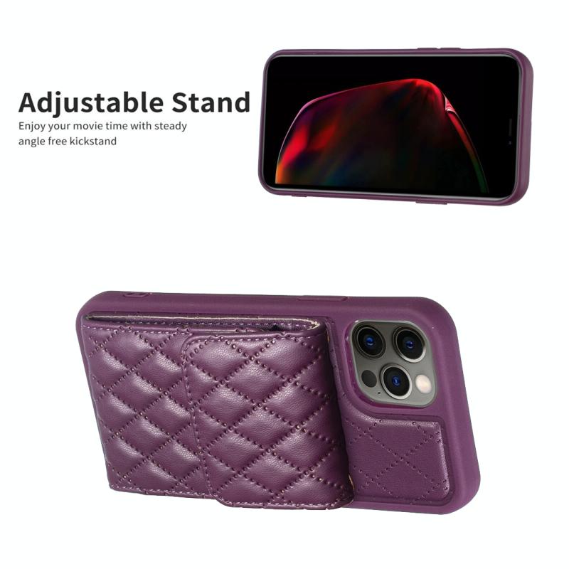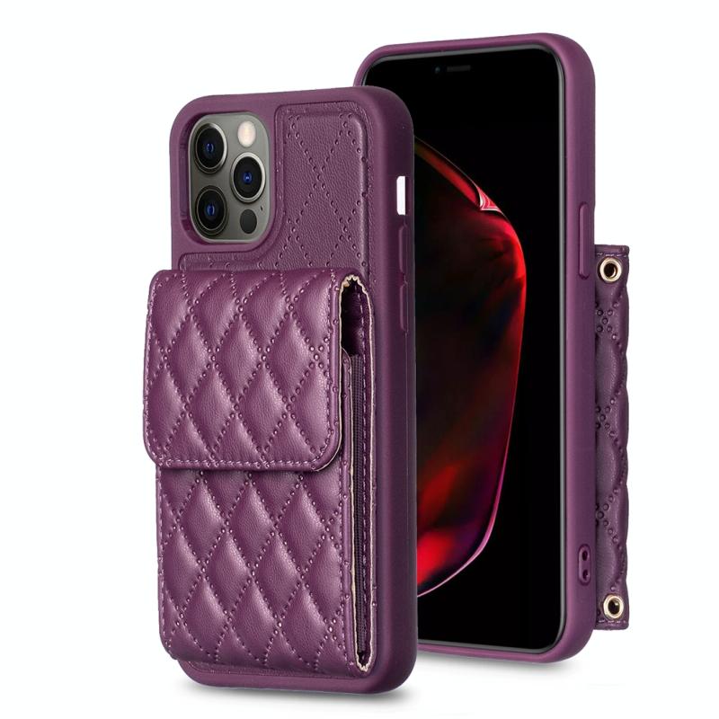 For iPhone 13 Pro Vertical Wallet Rhombic Leather Phone Case(Dark Purple)