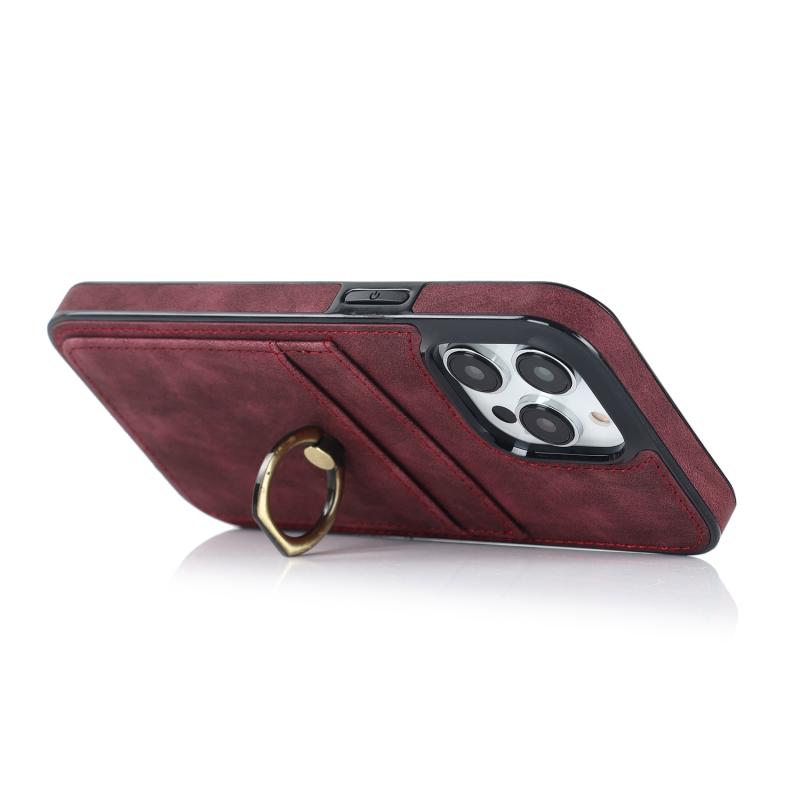 For iPhone 13 Pro Vintage Patch Leather Phone Case with Ring Holder (Red)