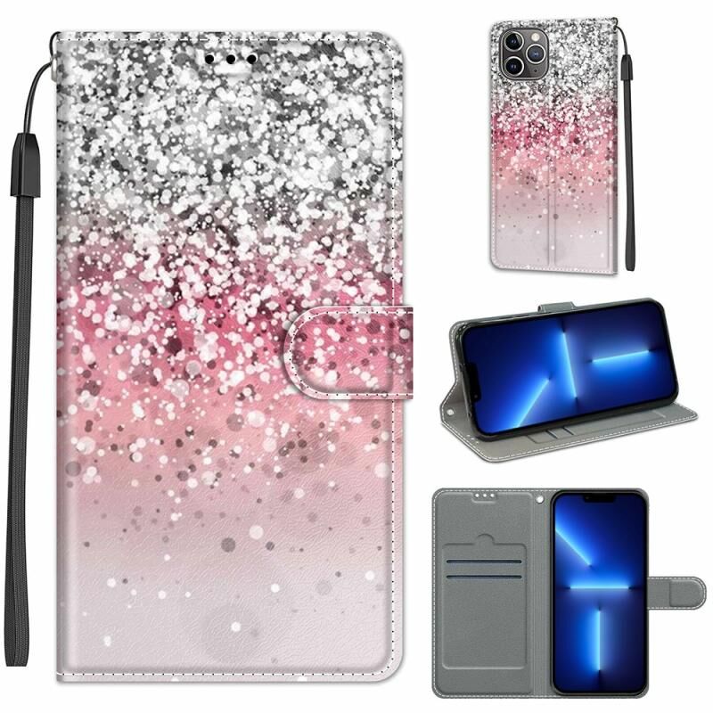 For iPhone 13 Pro Voltage Colored Drawing Magnetic Clasp Horizontal Flip PU Leather Case with Holder & Card Slots (C13 Silver Pink Glitter)