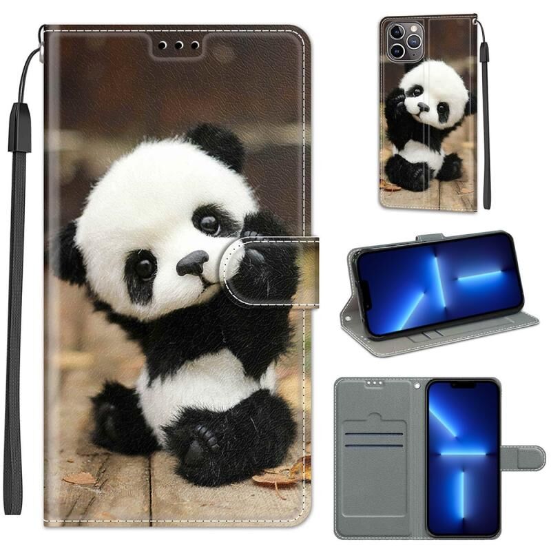 For iPhone 13 Pro Voltage Colored Drawing Magnetic Clasp Horizontal Flip PU Leather Case with Holder & Card Slots (C18 Wood Board Panda)