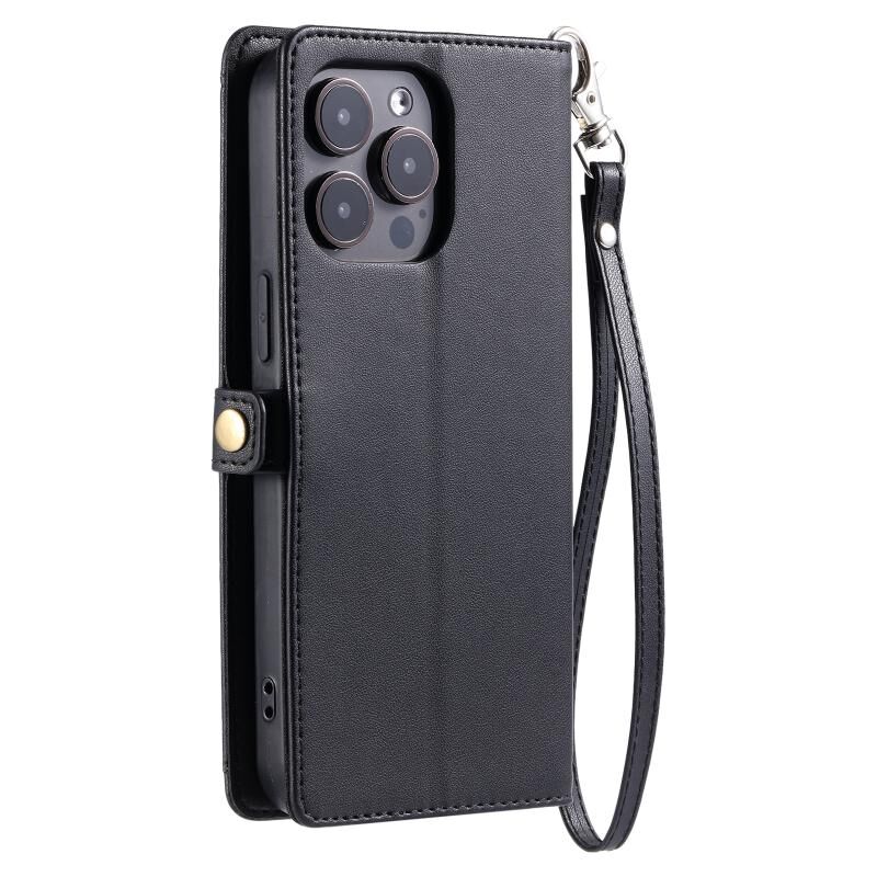For iPhone 13 Pro Wallet Multi-card Slot Leather Phone Case with Lanyard(Black)