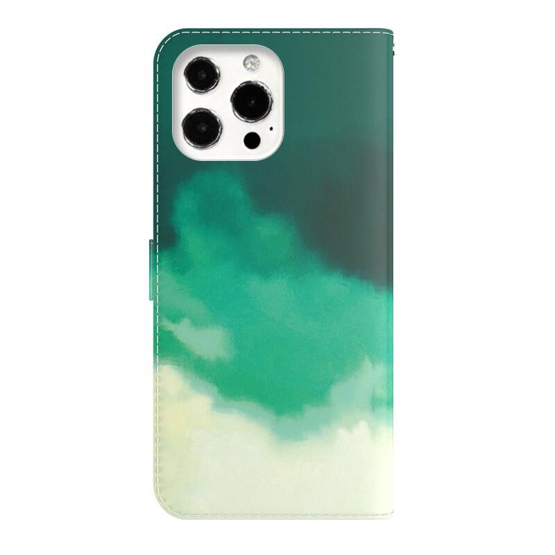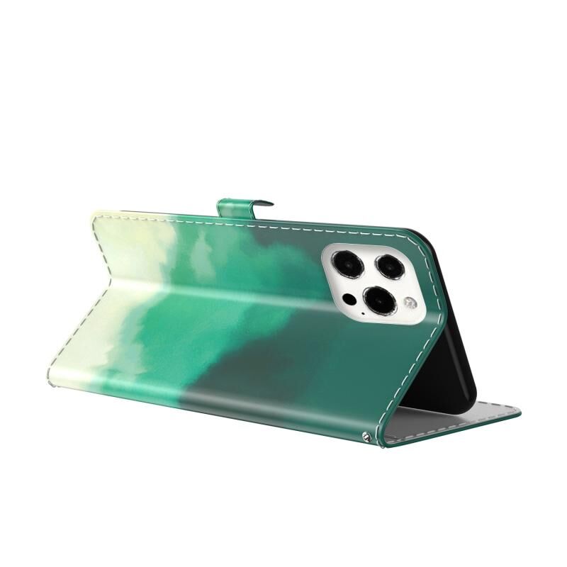 For iPhone 13 Pro Watercolor Pattern Horizontal Flip Leather Case with Holder & Card Slot & Wallet (Cyan Green)