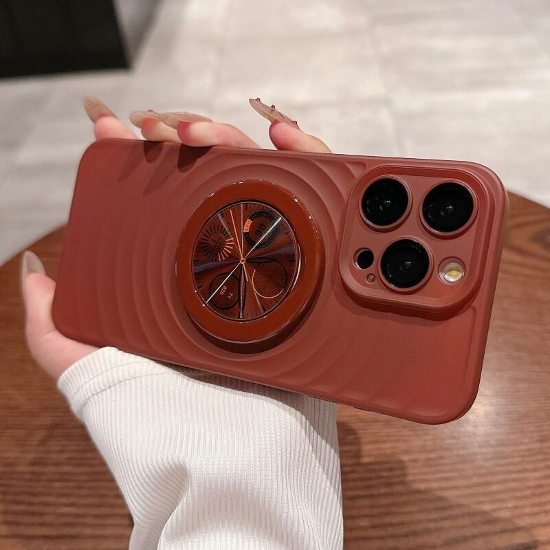 For iPhone 13 Pro Wave Texture PC Shockproof Phone Case with Holder(Maroon Red)