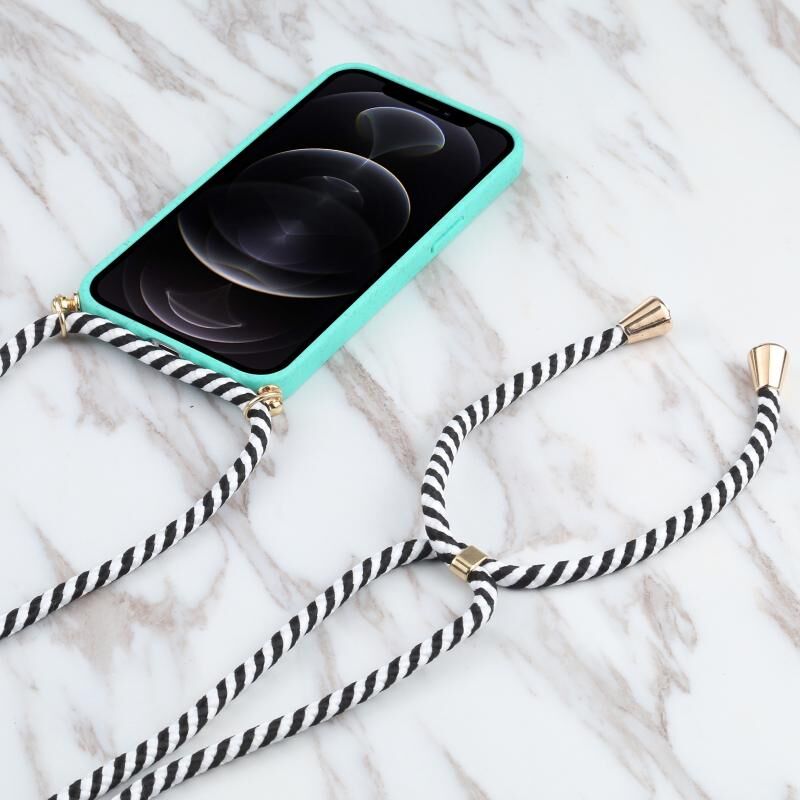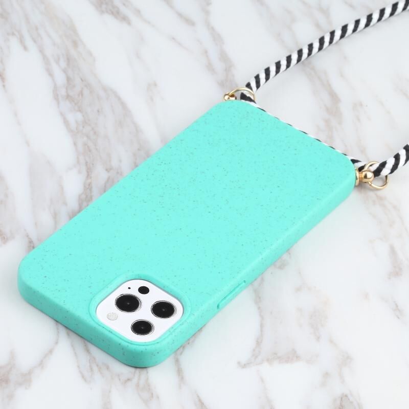 Θήκη για iPhone 13 Pro από άχυρο σίτου + TPU αντικραδασμική με κορδόνι λαιμού (Σκούρο Πράσινο)