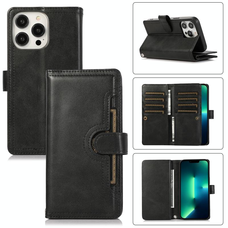For iPhone 13 Pro Wristband Card Slot Leather Phone Case(Black)
