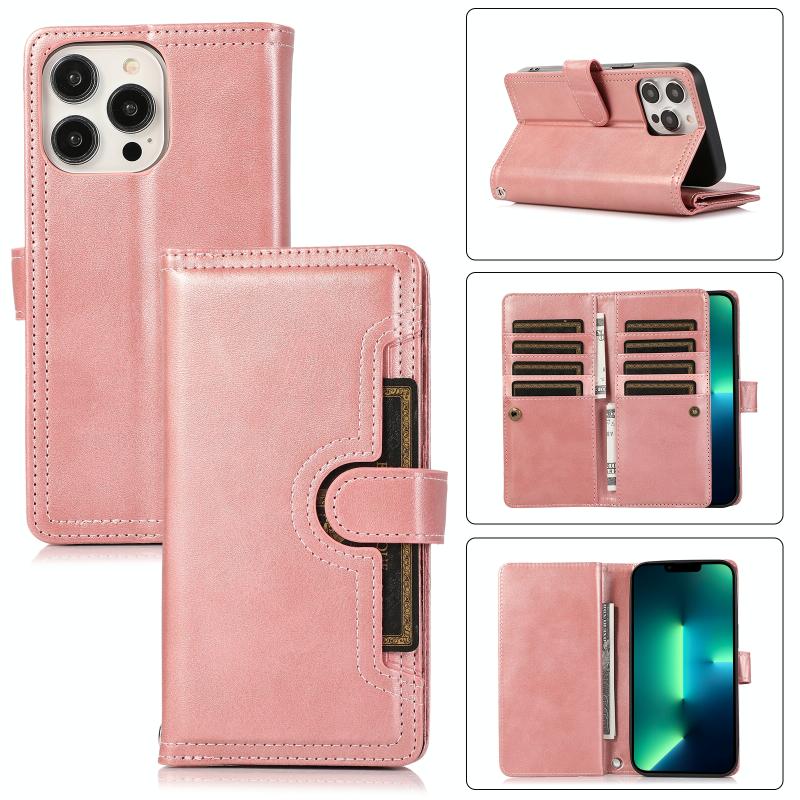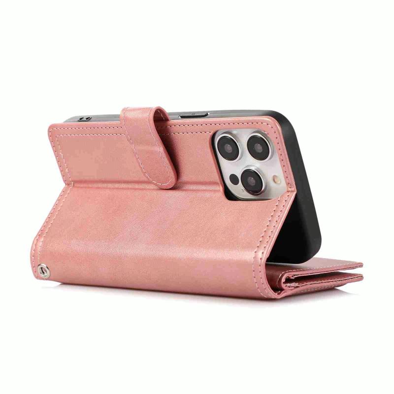 For iPhone 13 Pro Wristband Card Slot Leather Phone Case(Rose Gold)