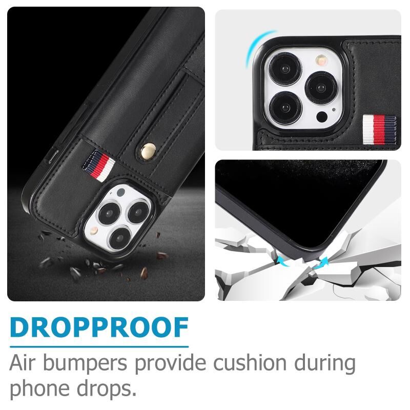 Θήκη τηλεφώνου δερμάτινη με βάση στήριξης και θήκη καρτών για iPhone 13 Pro (Μαύρο)
