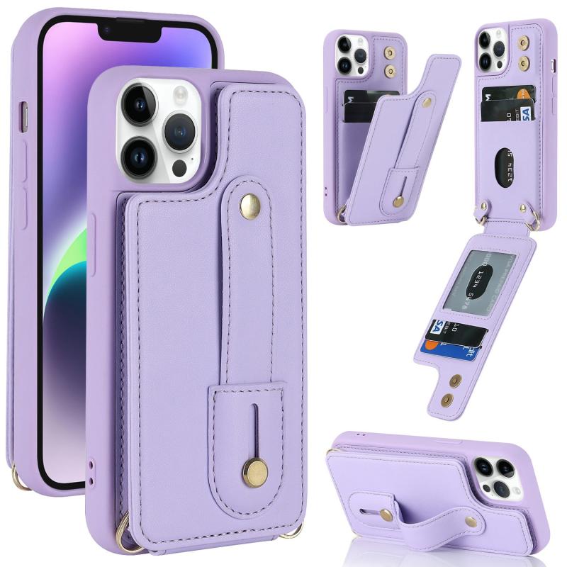 For iPhone 13 Pro Wristband Vertical Flip Wallet Back Cover Phone Case(Purple)