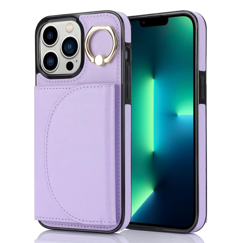 For iPhone 13 Pro YM007 Ring Holder Card Bag Skin Feel Phone Case(Purple)