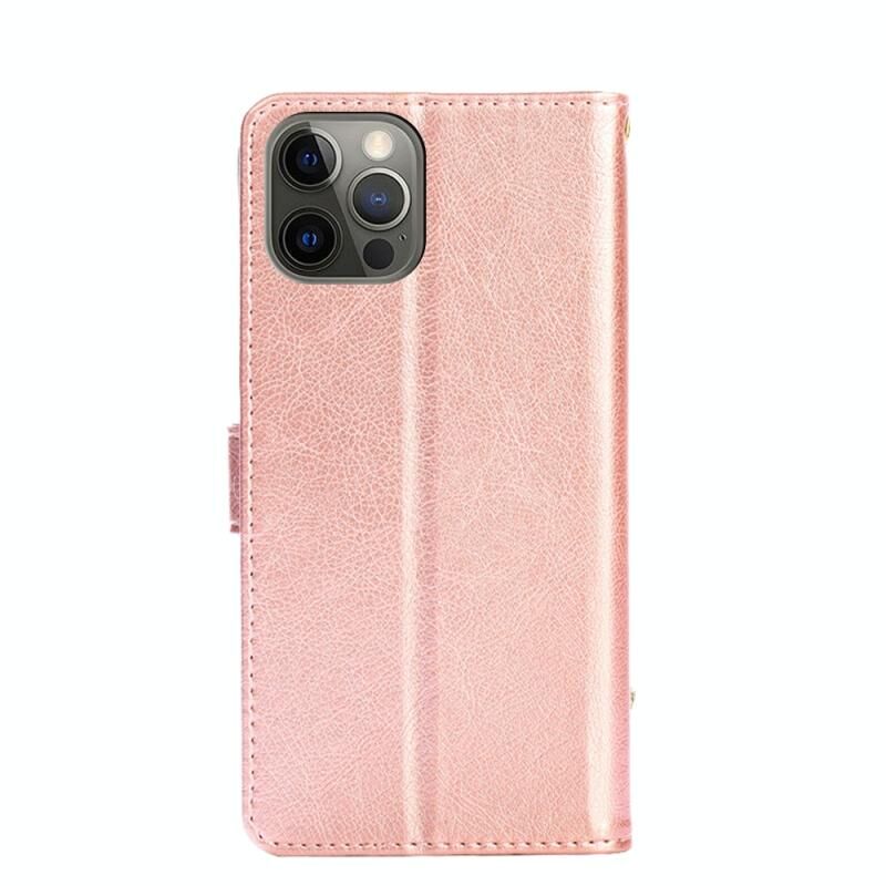 For iPhone 13 Pro Zipper Bag PU + TPU Horizontal Flip Leather Case with Holder & Card Slot & Wallet & Lanyard (Rose Gold)