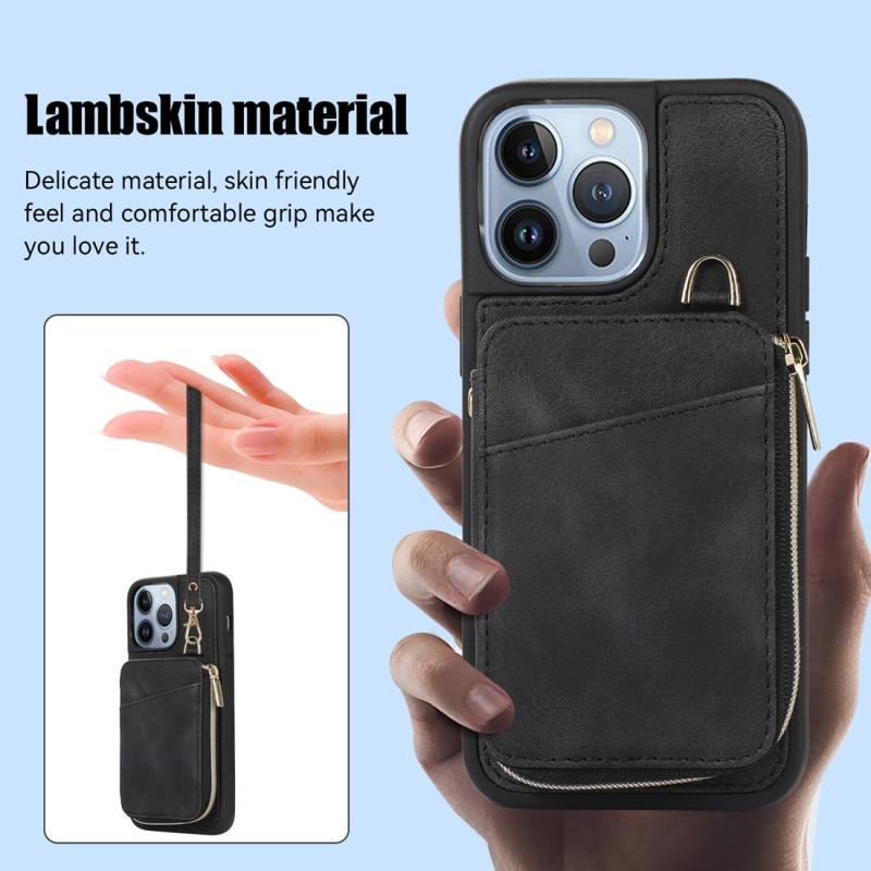 For iPhone 13 Pro Zipper Card Bag Back Cover Phone Case(Black)