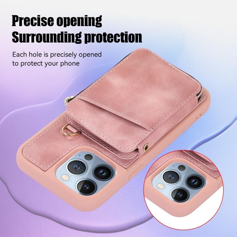 For iPhone 13 Pro Zipper Card Bag Back Cover Phone Case(Pink)
